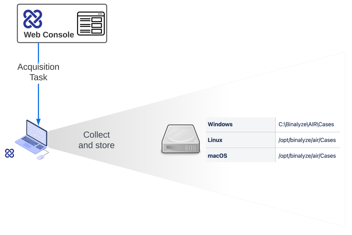 3. The AIR responder installed on asset machines runs the Acquire Task on the asset, collecting evidence and artifacts.