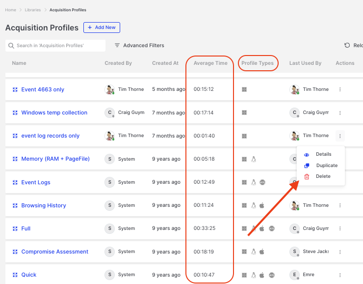 <div align="center"><figure><img src="https://1662683669-files.gitbook.io/~/files/v0/b/gitbook-x-prod.appspot.com/o/spaces%2FnA8kGzryHKp7UhDaLtzW%2Fuploads%2Fgit-blob-528c177bc2954b76c1dec28875d4ecf5a22a86f2%2Fstrong_acquisition_profiles_strong_average_time_to_run_profiles_and_action_button_to_duplicate_the_profile.png?alt=media" alt="" width="563"><figcaption><p><strong>Acquisition Profiles:</strong> Average time to run profiles and action button to duplicate the profile.</p></figcaption></figure></div>