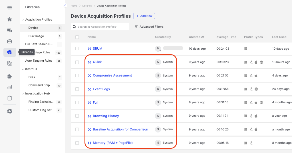 * **Disk Image Acquisition Profiles**: Extend collection capabilities to disk images via the File Explorer, enabling investigators to extract evidence and artifacts from forensic images without requiring a live system.