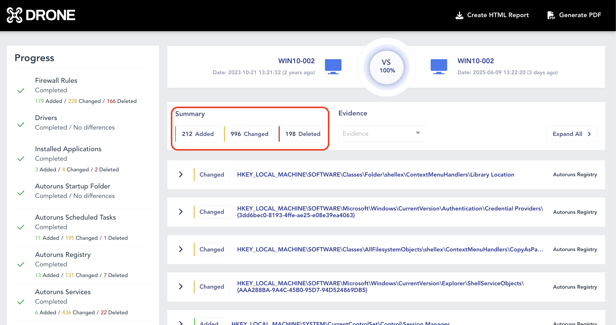 - Once the task is complete, review the results DRONE report.