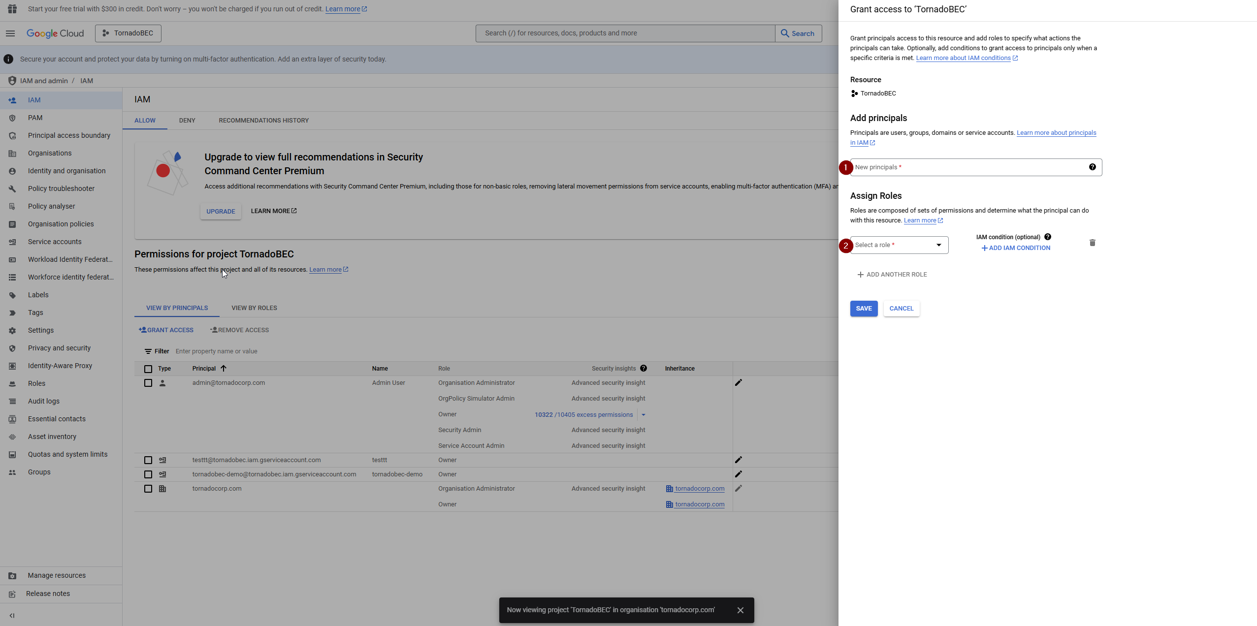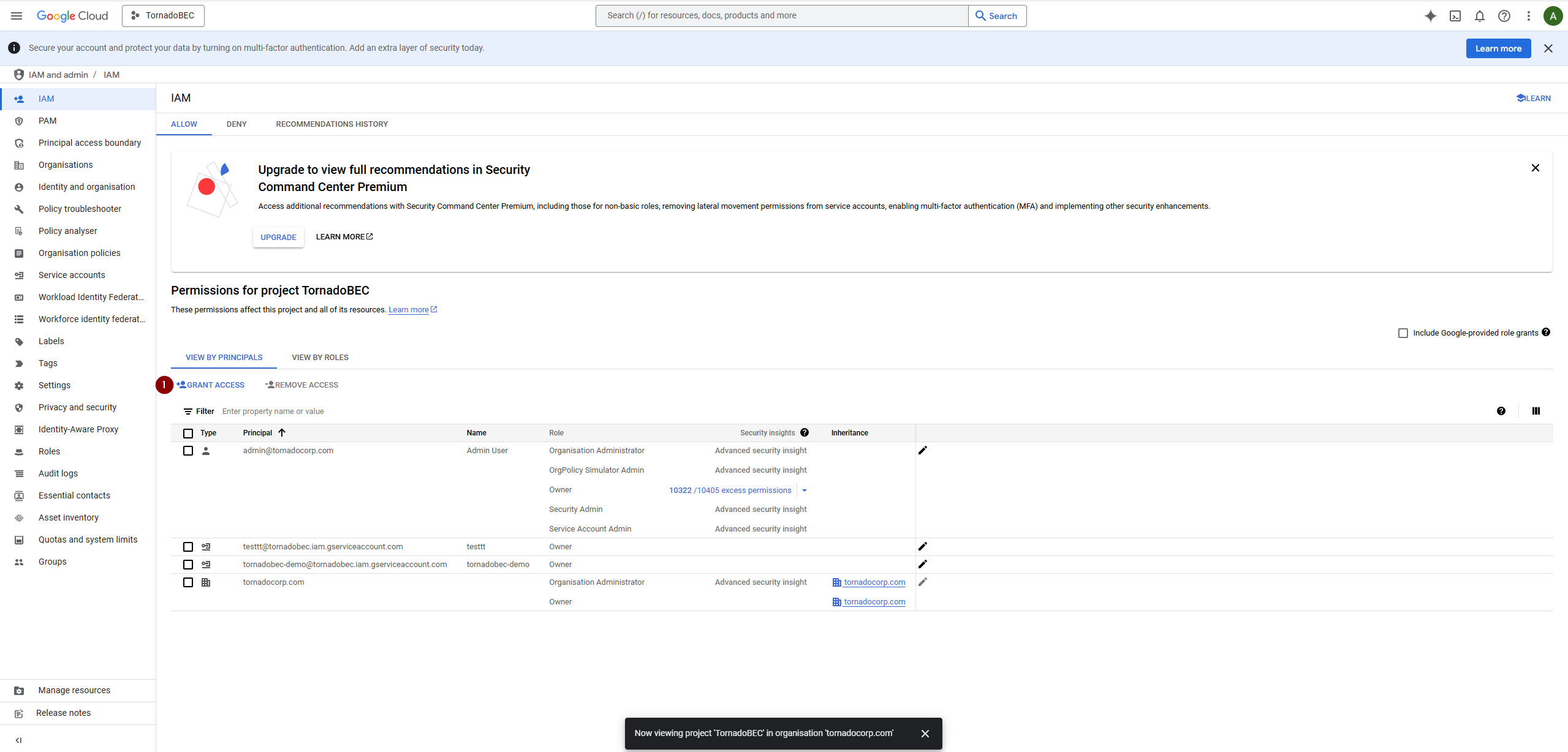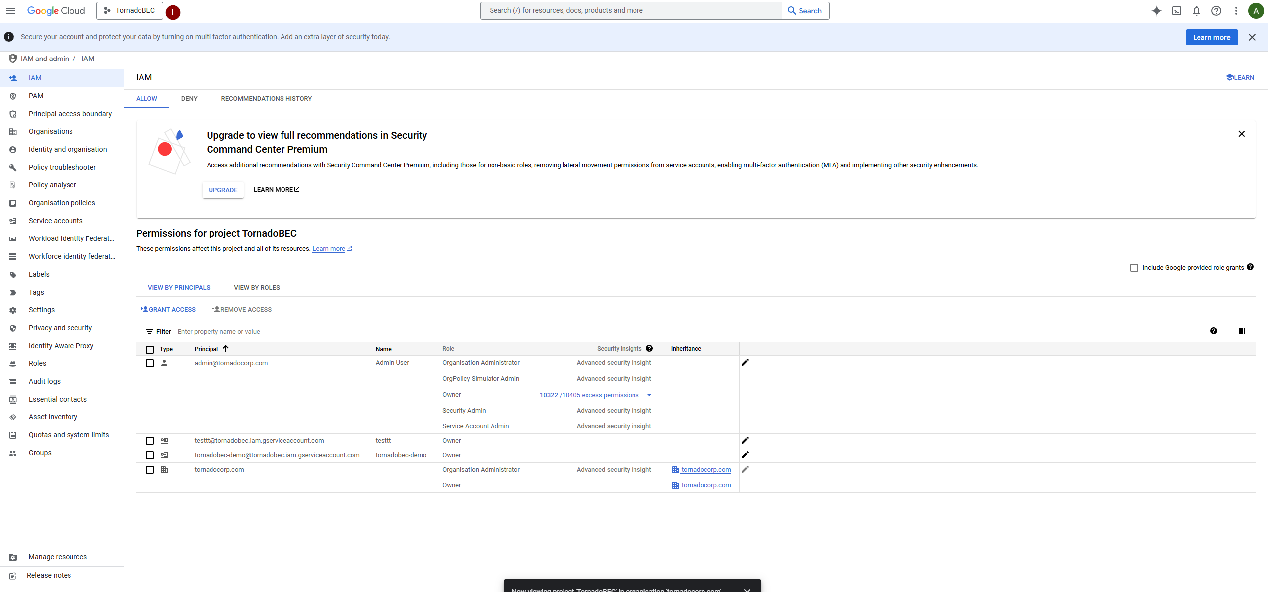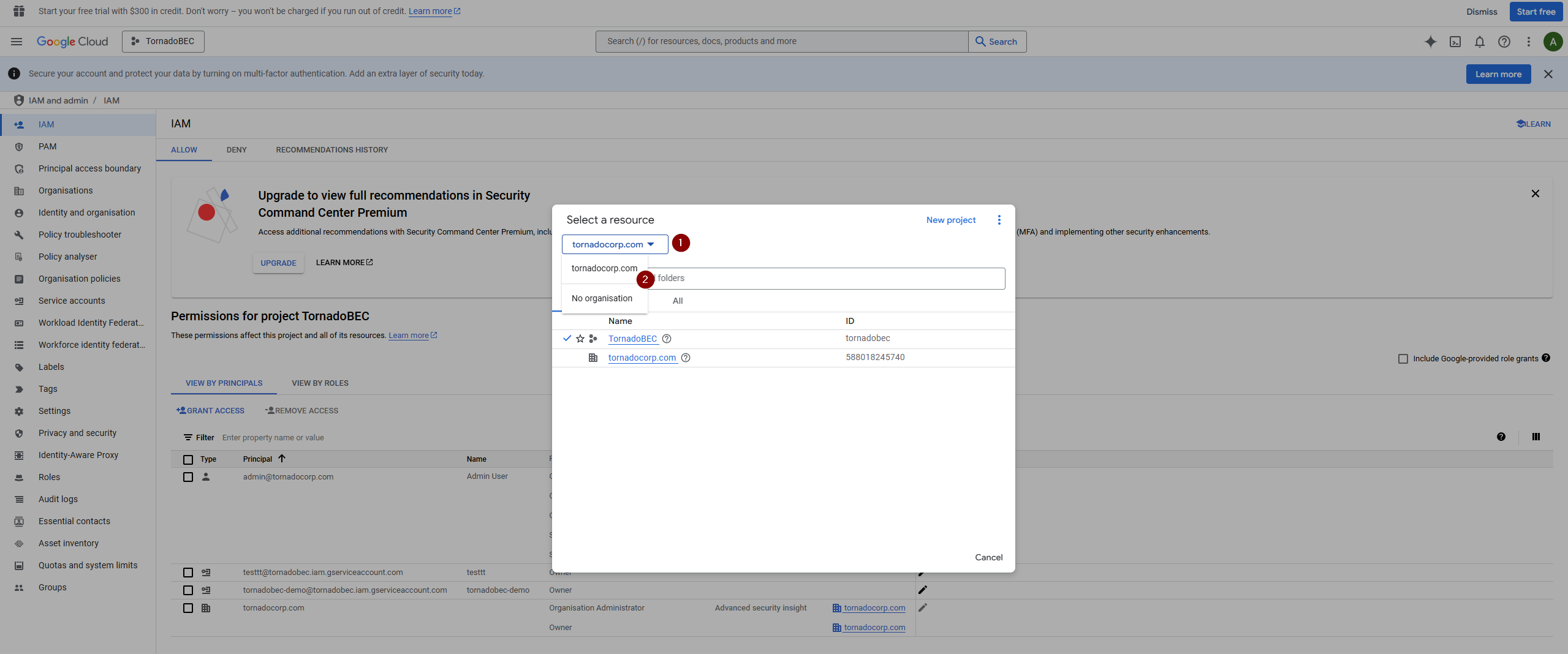 # Enable Service Account Key Creation