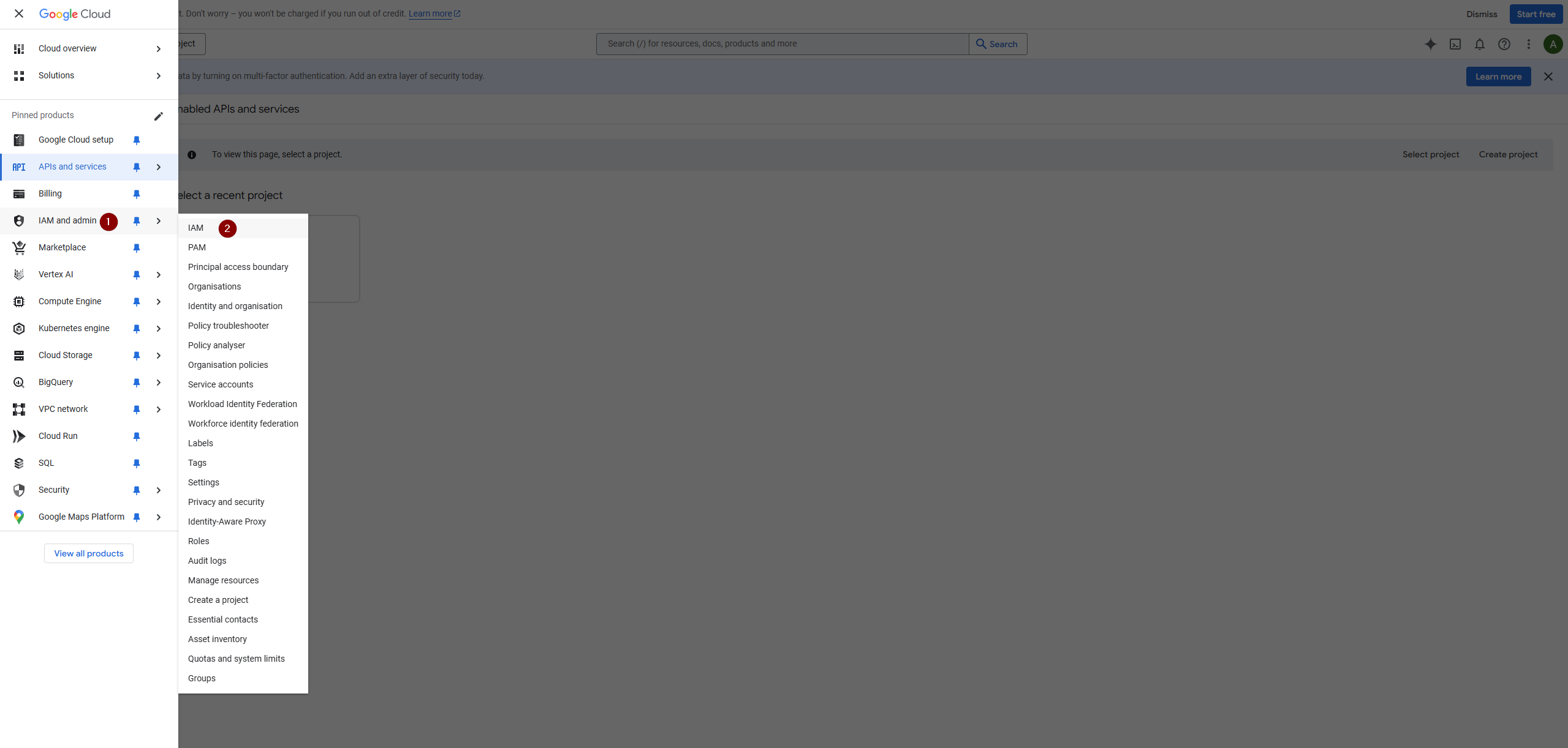 Go to 'IAM & Admin' and select 'IAM'.