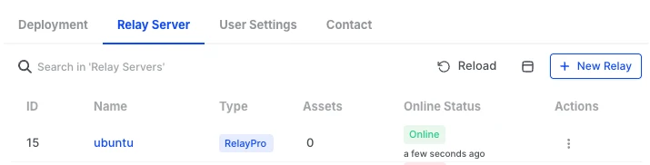 RelayPro: RelayPro registered and visible in the Relay Server list