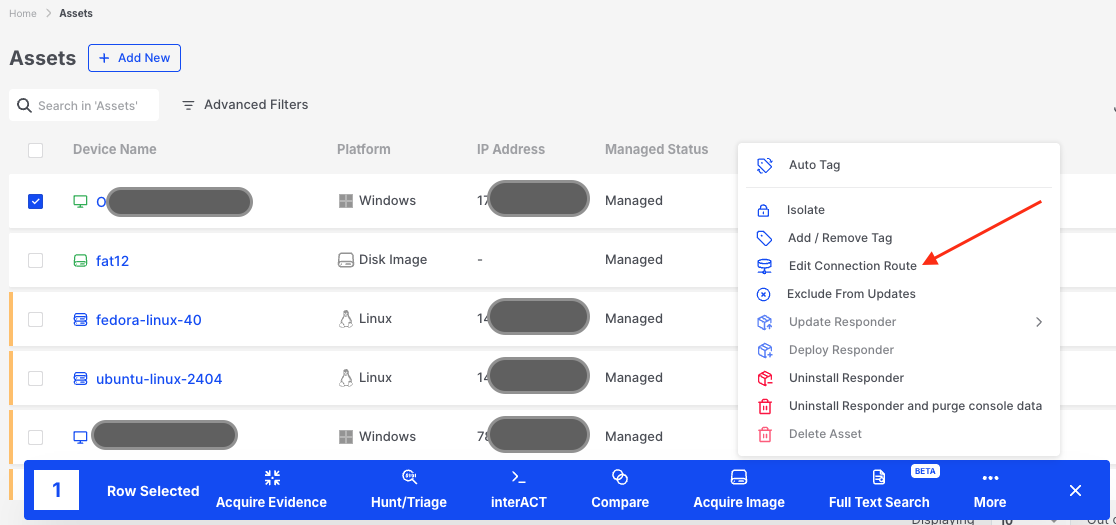 - Optional: install a new Responder via New Asset → Choose a Connection Route to validate.