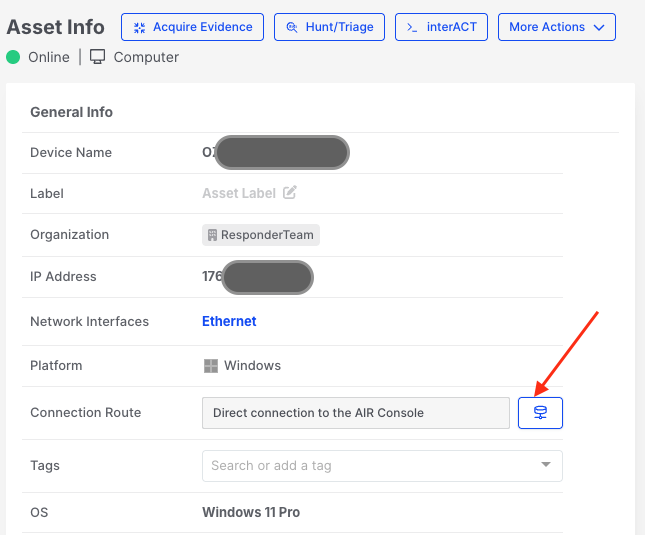 RelayPro: Open the Connection Route selector from the Asset Info page