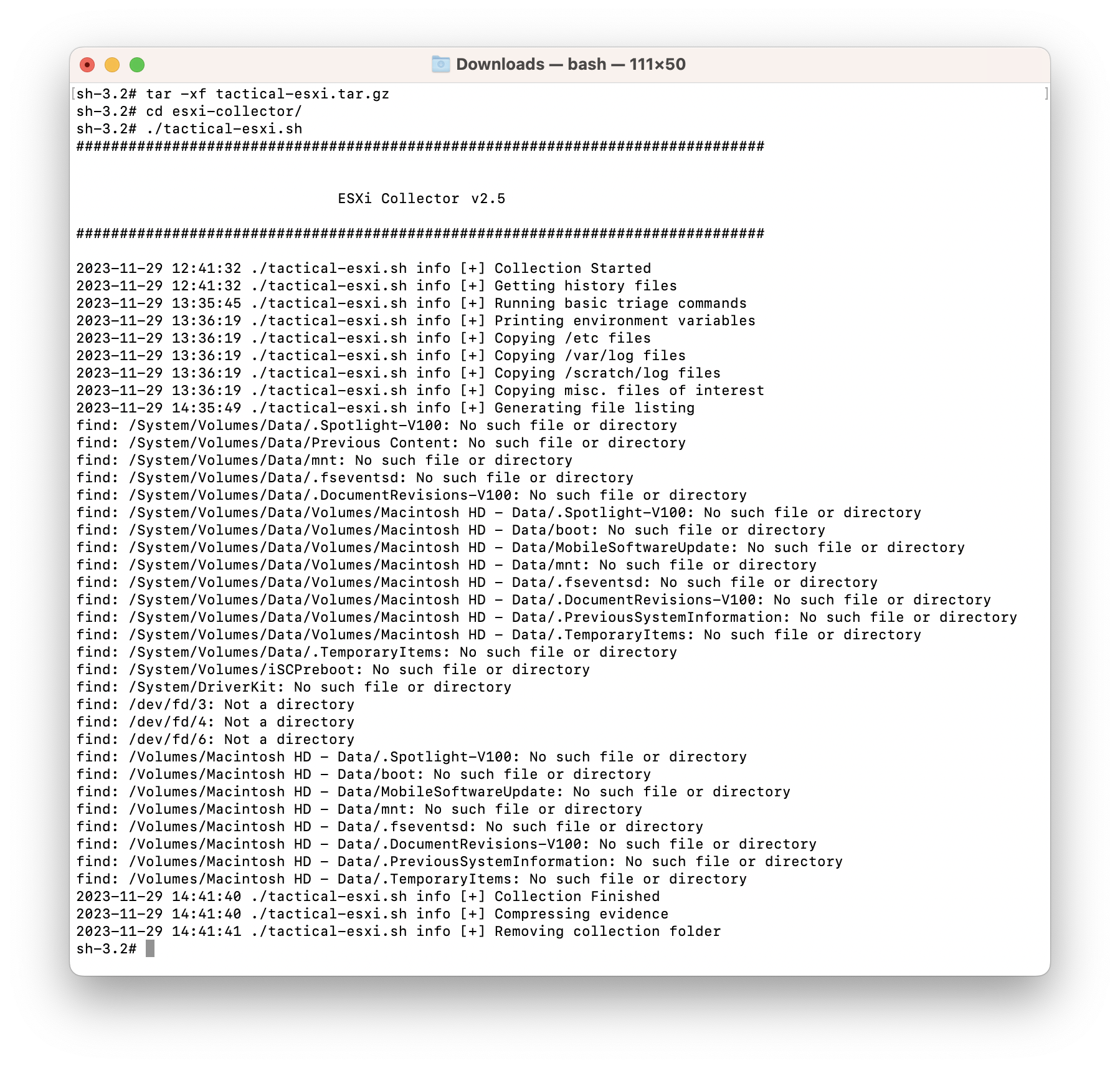 AIR offers a robust approach for evidence collection from ESXi platforms. DRONE is not currently supported for ESXi systems. This is achieved through a standalone ESXi collector, available for download on the Assets page of your AIR console: